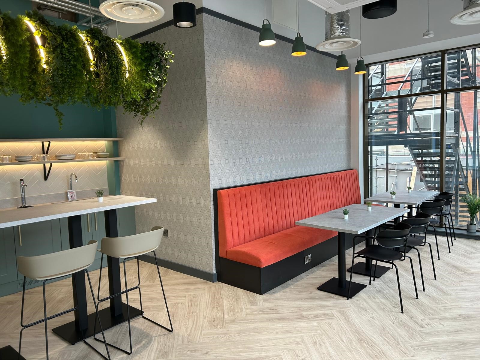 • Upholstered booth and banquette seating to café, games room and waiting areas
